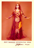 Swiss soprano (b. 1936), signed photograph, shown in role (possibly the Queen of the Night in Mozart's Die Zauberflote). Signature on verso. Photograph by James Heffernan, Metropolitan Opera, New York. Size is 3.5 x 5 inches, in excellent condition.