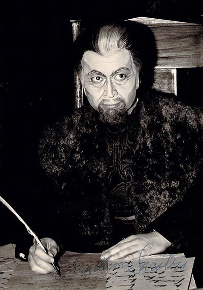 Signed photo, shown in role in Busoni's Doktor Faust. Size is 3.75 x 5.5 inches, in excellent condition.