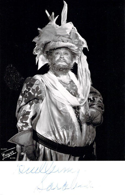 Signed photo, shown in title role of Verdi's Falstaff. Stamped on verso by photographer Foto Straub (Polten, Austria?). Size is 4 x 5.5 inches, in excellent condition.