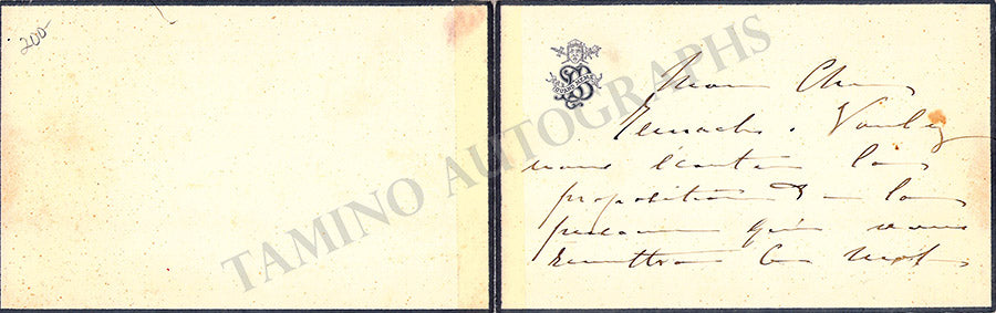 Typed note in English signed by her and dated in Paris, 1920. Size is 7.1 x 4.8 inches, 1 page, stains, in very good condition.