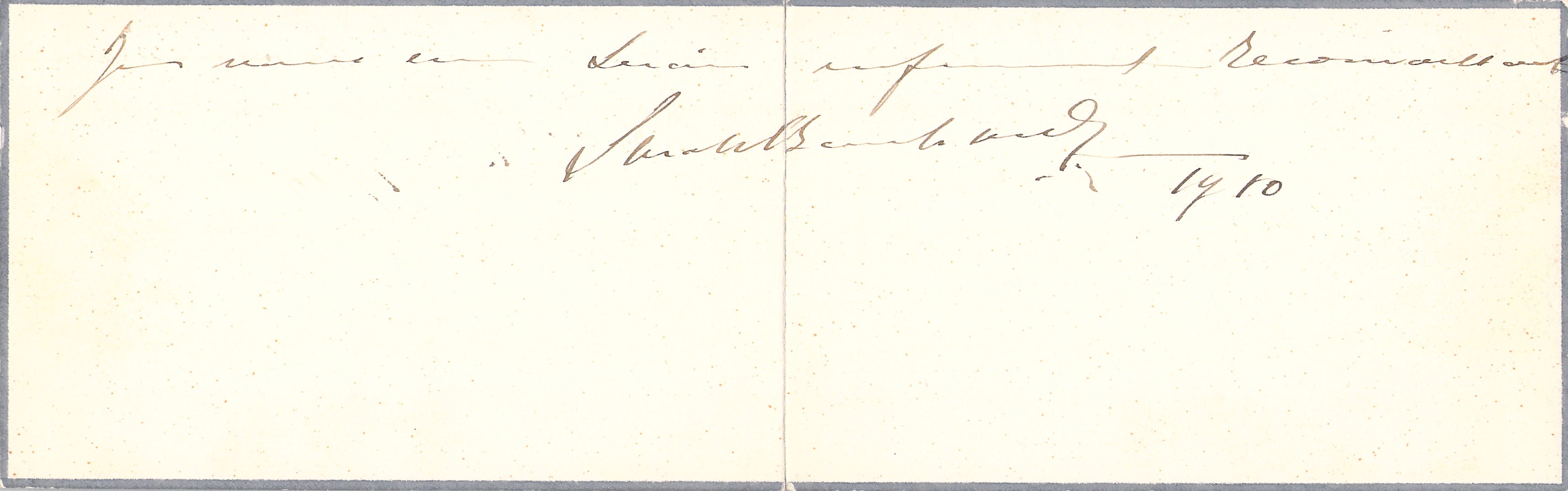 Autograph note on a folded card signed by her and dated 1910. Size is 5.75 x 3.5 inches, in excellent condition.