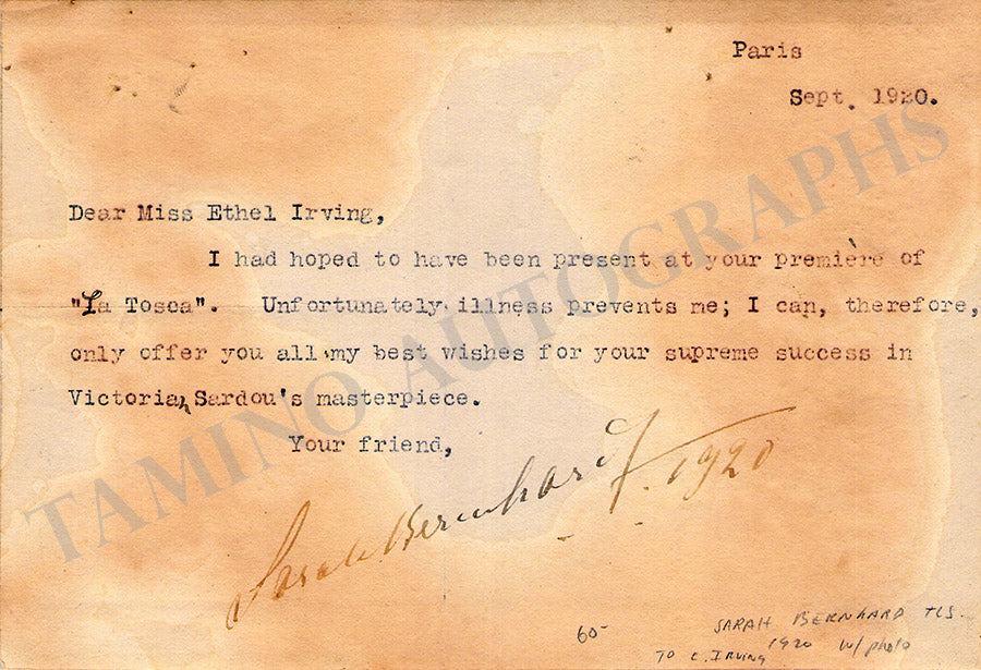 Bernhardt, Sarah - Various Autographs
