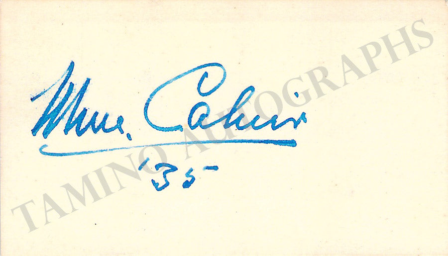 Card signed by her dated 1935. Size is 3.75 x 2 inches, in very good condition.