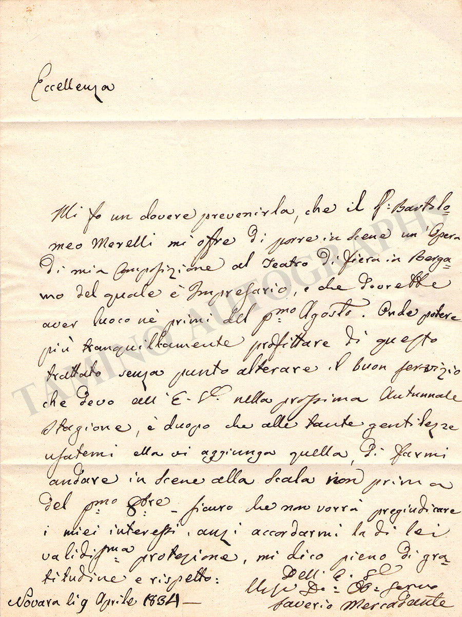 Mercadante, Saverio - Autograph Letter Signed 1834 Mercadante, Saverio - Autograph Letter Signed 1834
