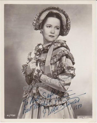 Signed photo, shown as Zerlina in Mozart´s opera Don Giovanni. Size is 8 x 10 inches.
