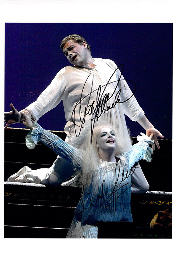 Canadian tenor (b.1965) and German soprano (b.1966), double signed photograph,, shown as Leukippos and Daphne in Richard Strauss's Daphne at the Vienna State Opera in 2004. Size is 8 x 11.5 inches, in very good condition.