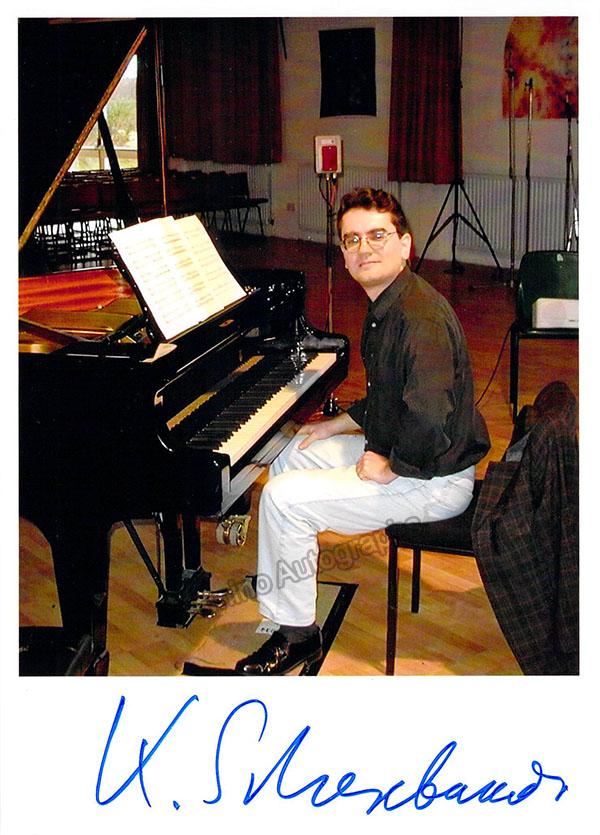 Russian pianist (b.1963) and winner of the first Rachmaninoff Interantional Piano Competition in 1983. Signed color photo shown in rehearsal. Size is 5 x 6.9 inches, in excellent condition.
