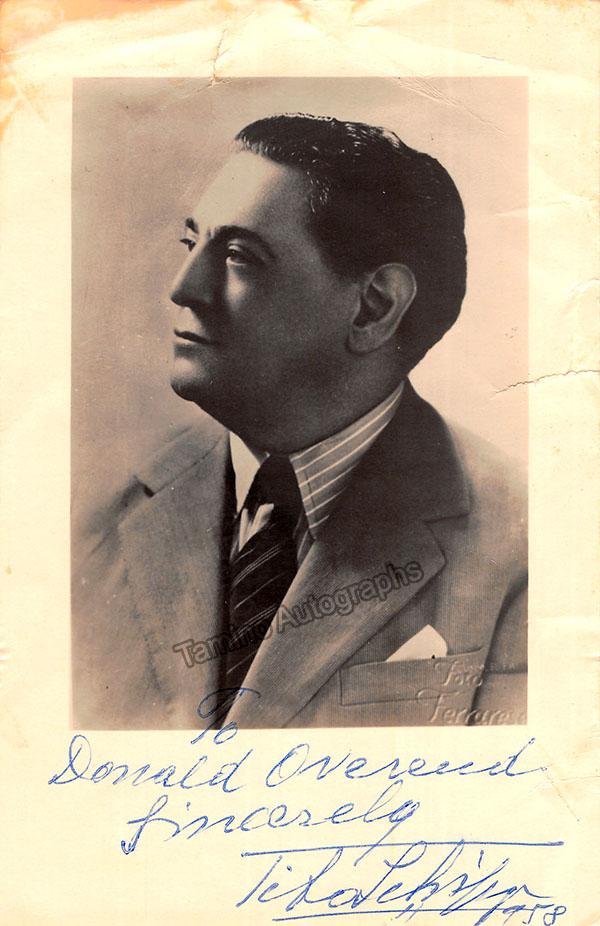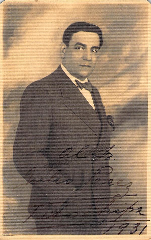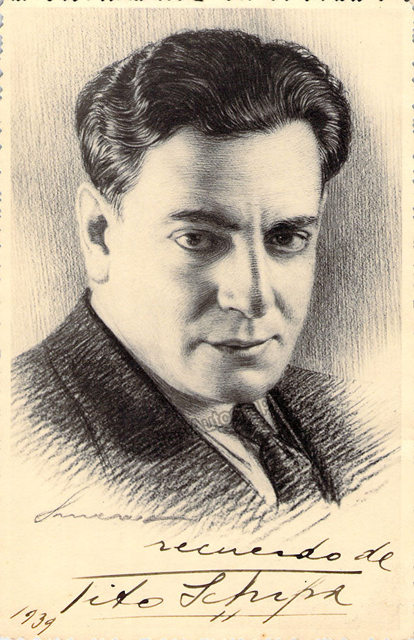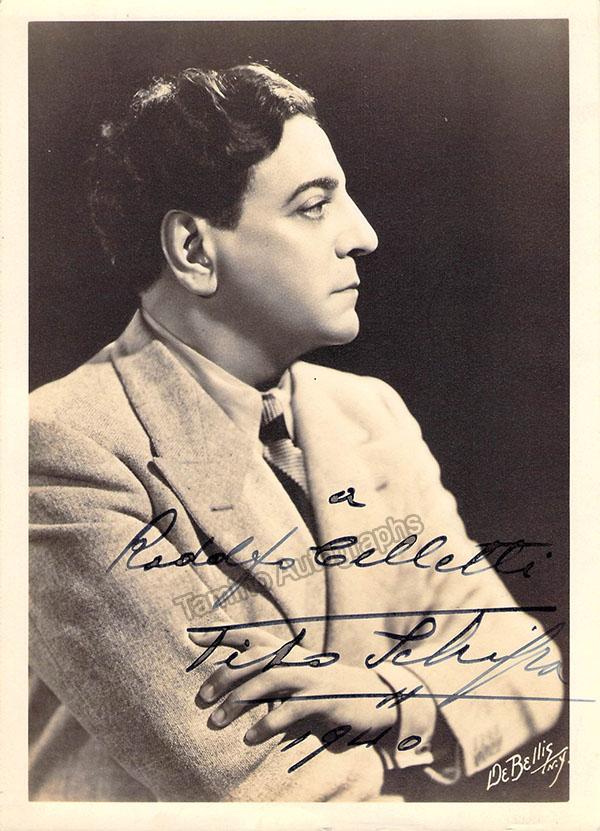 Signed photographic portrait, dated in 1939. Stamped on verso by photographer Sudak, Teatro Colon, Buenos Aires. Size is 4.5 x 6.75 inches, mounting tape traces on verso, otherwise in excellent condition.