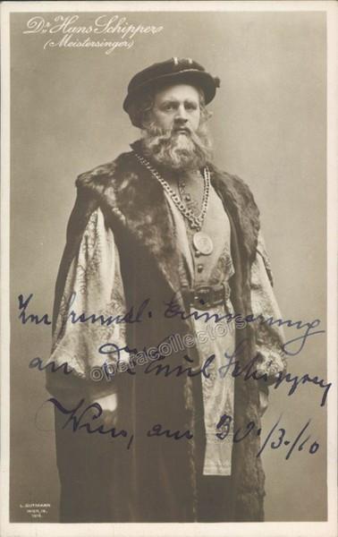 Signed photo postcard of the Austrian bass-baritone (1882-1957), shown as Hans Sachs in Die Meistersinger, 3.5 x 5.5 inches, dated in Vienna in 1910. In excellent condition