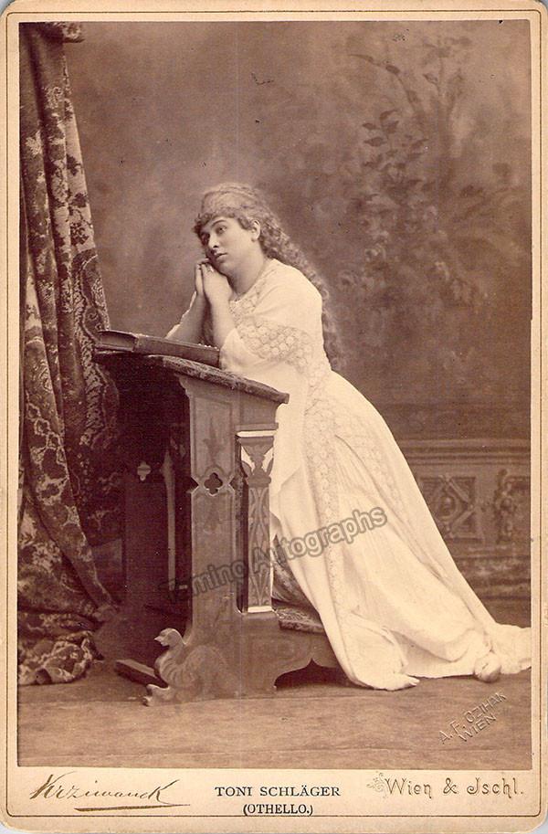 Austrian soprano (1859-1910), beautiful unsigned cabinet photo, shown as Desdemona in Otello. Photograph by Krziwanek, Vienna. Size is 4.25 x 6.5 inches