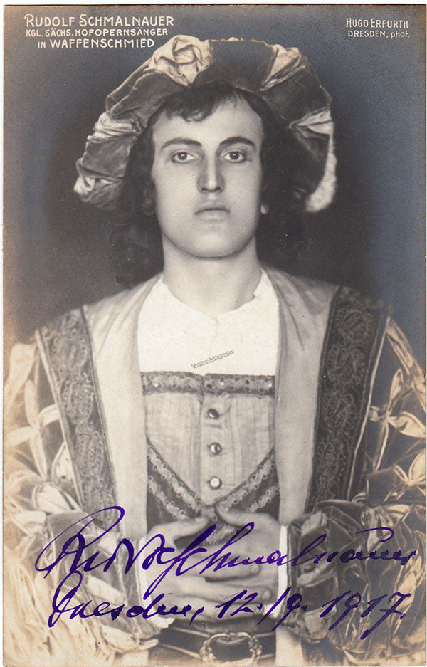 German baritone (1883-1939), signed postcard photograph, shown in role (possibly in Wagner's Die Meistersinger), dated in Dresden in 1917. Photo by Hugo Erfurth, Dresden. Size is 3.5 x 5.5 inches, vintage photo in excellent condition.
