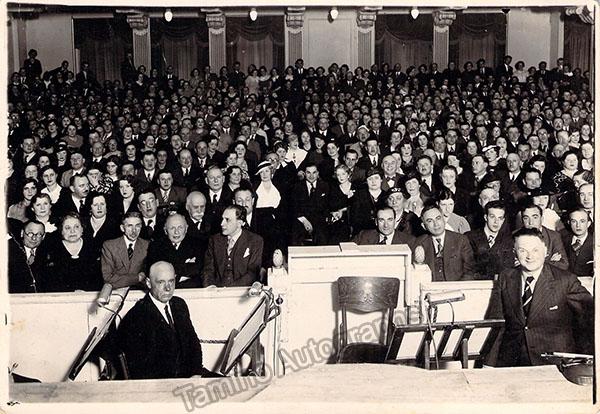 Austro-Hungarian and Romanian Jewish tenor and actor (1904-1942), unsigned photo, shown as himself sitting in the audience at a concert (he is shown in the center of the photo in the third row between two women). Stamped on verso by photographer S. Epels, Riga. Size is 4.75 x 7 inches, in very good condition.