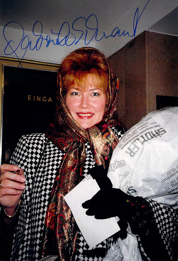 Signed photo, shown as herself. Photo by Theresia Linke, Vienna. Size is 5 x 7.5 inches, in excellent condition.