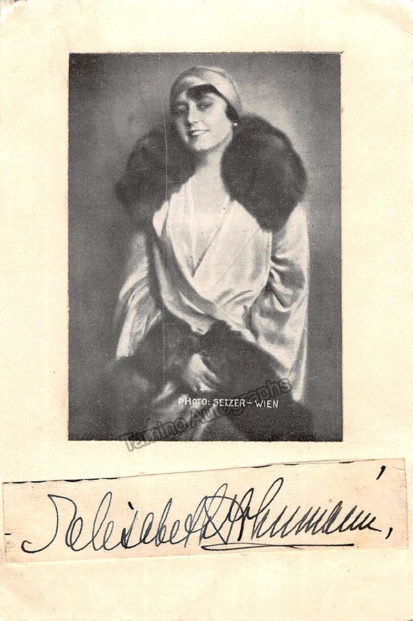 German-born American soprano (1888-1952), signature cut, attached to a half-tone photo. Size is 3.75 x 5.75 inches, in excellent condition.