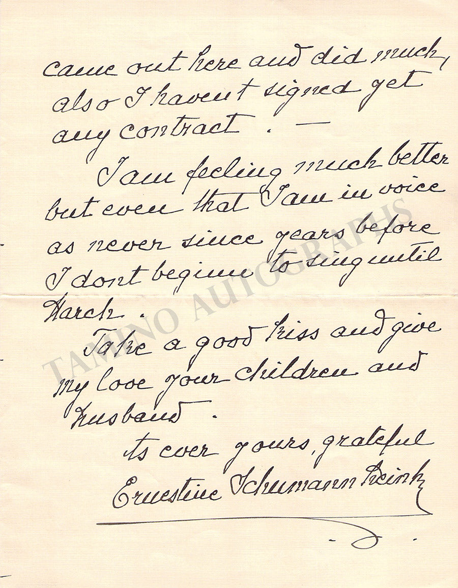 Schumann-Heink, Ernestine - Autograph Letter Signed