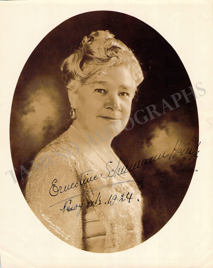 Beautiful sepia color signed photograph, shown as herself, dated in Chicago in 1918. Inscribed to American pianist and vocal coach Frank La Forge (1879-1953). Photograph by John Weiss, New York. Size is 9.8 x 13 inches, silvering on the image, large crease from top to bottom, minor loss of paper over the upper left corner, otherwise in good condition. Priced accordingly.