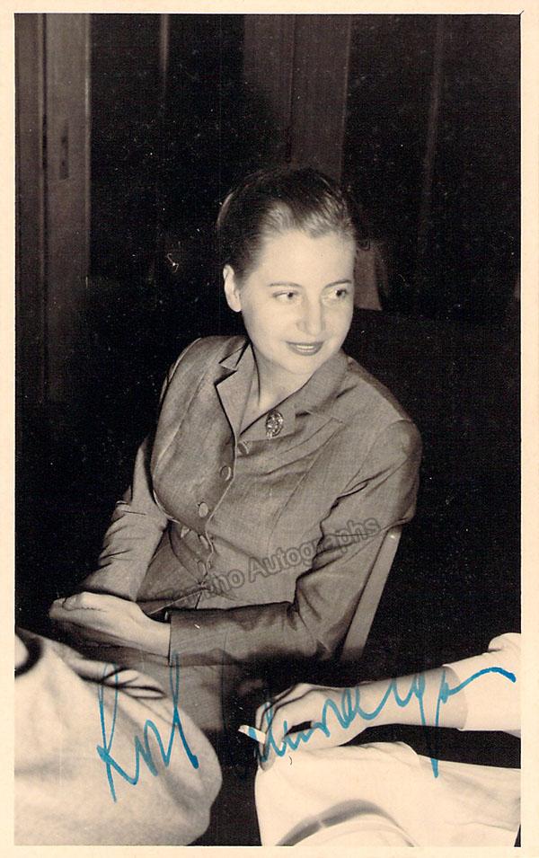 Signed photo postcard, shown in role. Stamped on verso by photographer Rich Reznicke, Vienna. Size is 3.5 x 5.5 inches, in excellent condition.