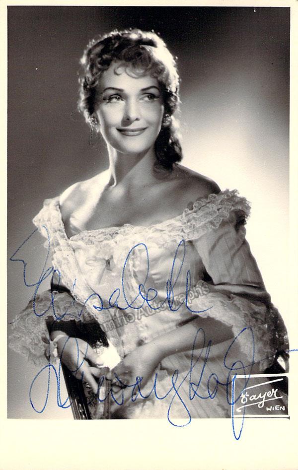 German-born soprano (1915-2006), one of the most renowned opera singers of the 20th century. Signed photo, shown as the Marschallin in Richard Strauss's Der Rosenkavalier, one of her best known roles. Stamped on verso by photographer Fayer, Vienna. Size is 3.5 x 5.5 inches, in excellent condition.