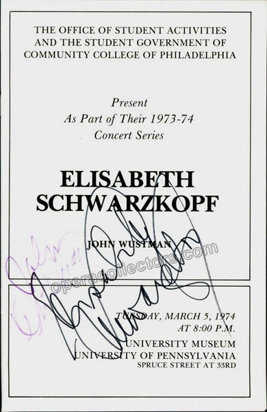 Recital in Philadelphia, 1974, with pianist John Wustman, 6 pages, signed on cover by both artists