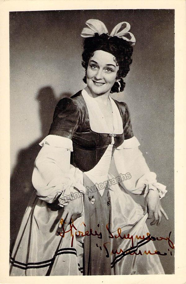 Swedish soprano (1909-2008), signed photo postcard, shown as Susanna in Nozze di Figaro. Size is 3.5 x 5.5 inches with some wear on bottom right corner but otherwise excellent condition.