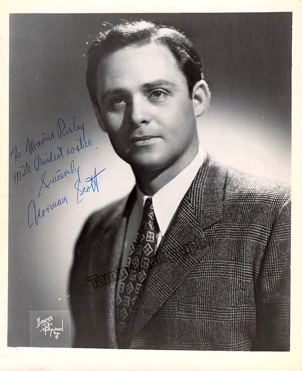 Signed photograph, shown as himself, inscribed. Printed signature on front of Bruno of Hollywood and New York photo studio. Size is 8 x 10 inches, small creases on corners, otherwise in excellent condition.
