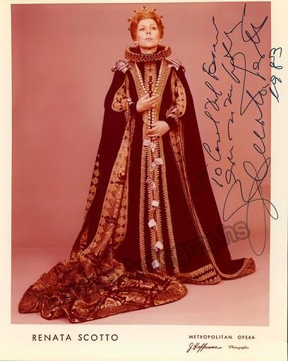 Signed photo of the celebrated Italian soprano (b.1934) as Elisabetta di Valois in Verdi's Don Carlo at the Metropolitan Opera, dated in 1983. Inscribed. Size 8 x 10 inches.