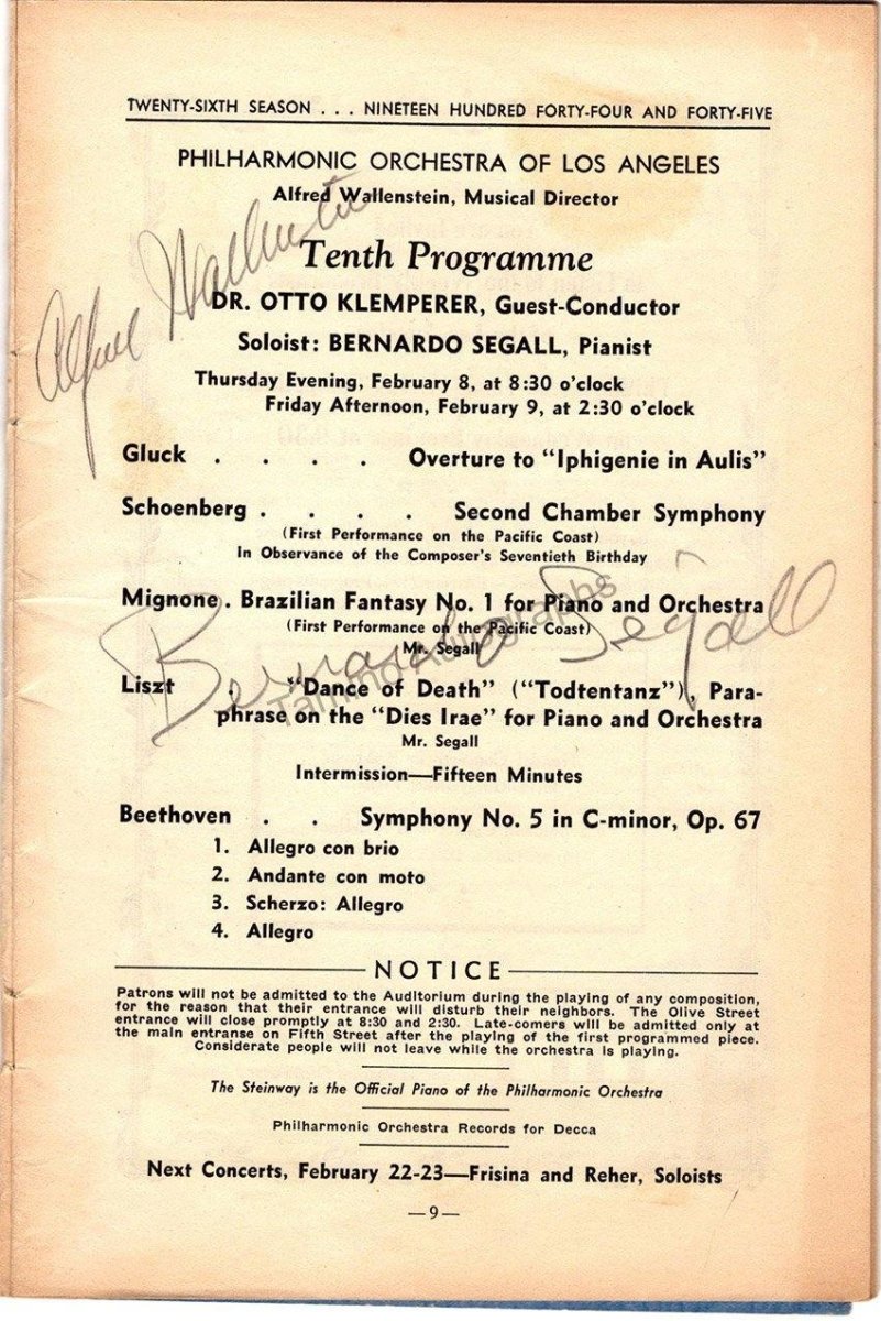 Segall, Bernardo - Wallerstein, Alfred - Double Signed Program Los Angeles 1945