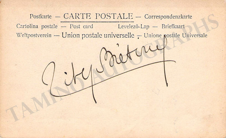 French baritone (1854-1942), signed postcard photograph, shown as Wolfram in Wagner's Tannhauser, dated in 1910. Signed on front with additional handwriting on verso. Photo by Dupont. Size is 3.25 x 5.25 inches, in excellent condition.