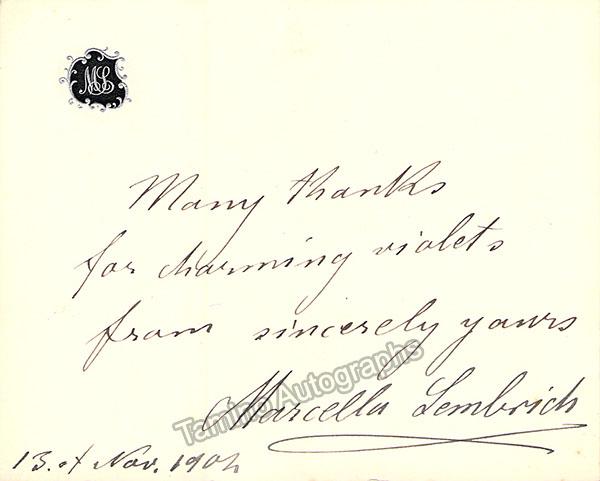 SEMBRICH, Marcella - Signed Photo | Authentic Guaranteed