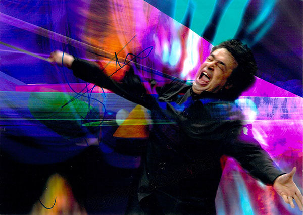 Fantastic color photograph signed by him, shown in performance in Cologne, Germany (1999). Size is 8.25 x 5.75 inches, in excellent condition.
