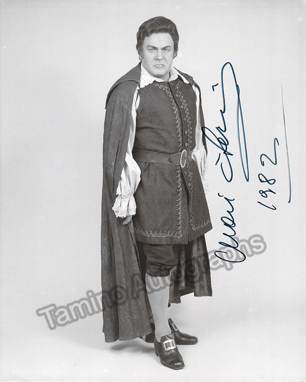 Italian baritone (1928-2015), signed photo shown in role , at the Metropolitan Opera in New York, where he sang for many years, dated in 1982. Size is 8 x 10 inches, excellent condition