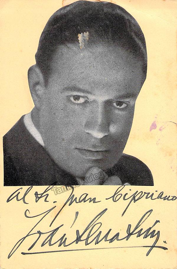 Argentinian baritone, signed photo, shown as himself, inscribed. Size is 3.5 x 5.25 inches, some stains on side of photo as well as near the top of the image, priced accordingly.