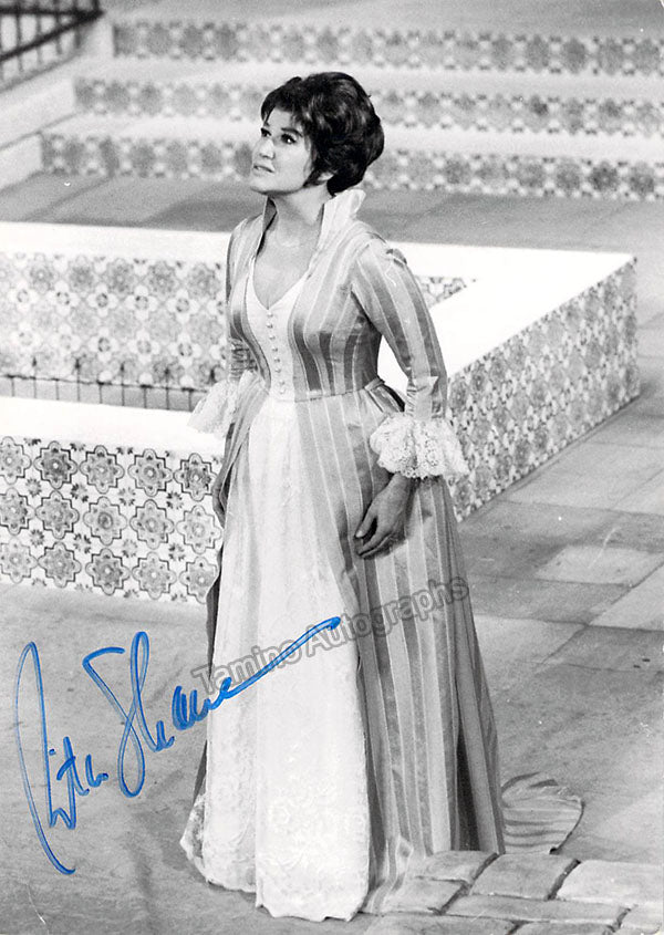American coloratura soprano (1936-2014), signed photograph, shown in role. Stamped on verso by photographer Anne Kirchbach, Munich. Size is 4 x 5.75 inches, small crease on bottom left, otherwise in excellent condition.
