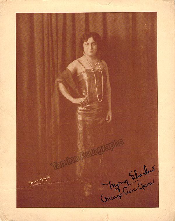 American soprano (1893-1935), signed photo, shown as herself, at the Chicago Civic Opera. Photo by Moffett, Chicago, dated in 1924. Size is 8 x 10 inches, significant wear on edges but in generally good condition.