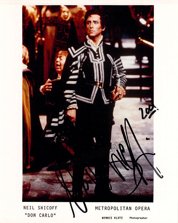 Fine black-and-white promo photograph signed by him, shown as Maurizio in Cilea's opera Adriana Lecouvreur at The Metropolitan Opera. Size is 5 x 7 inches, in excellent condition.