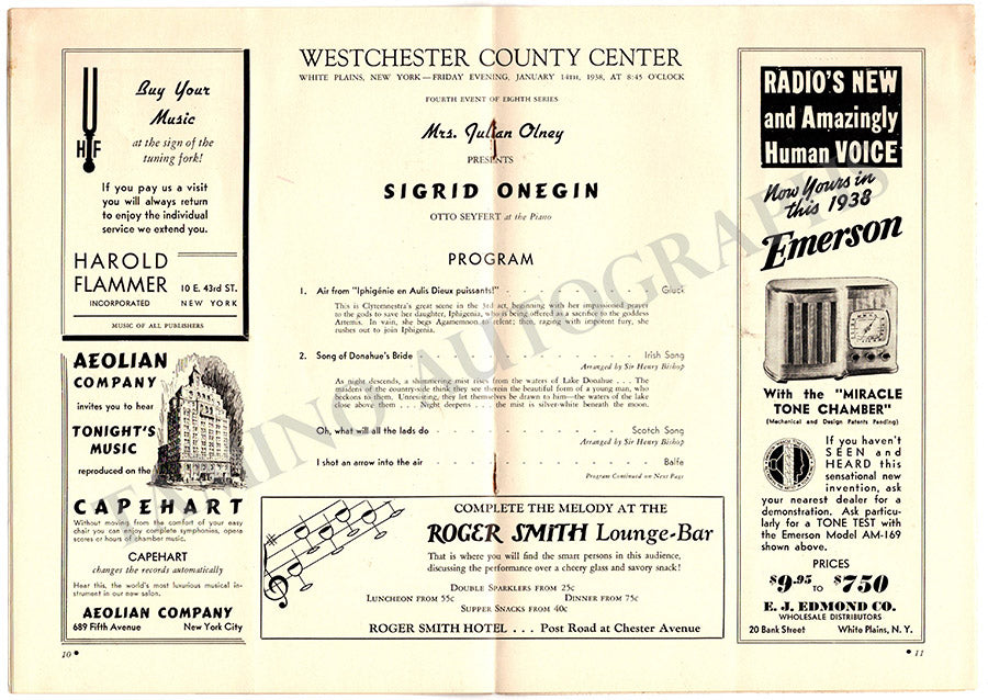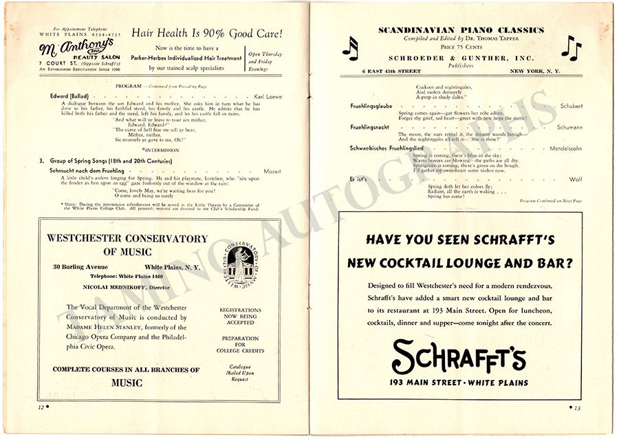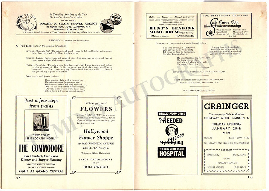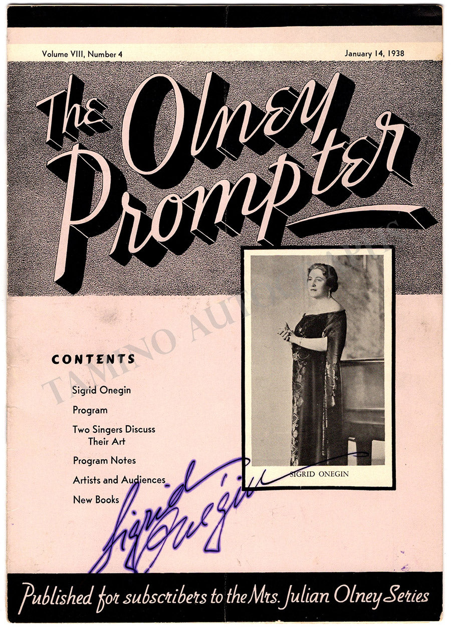 Program/Magazine for a performance of the Franco-German contralto at the Westchester County Center, New York, on January 14th, 1938, signed by her on the cover.