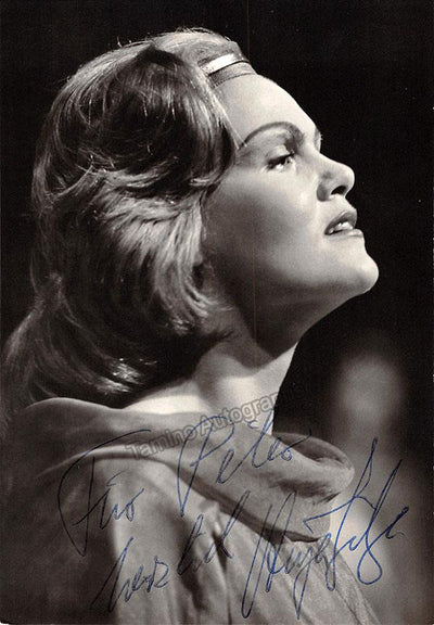 Signed photograph, shown as Kostelnicka in Janacek's Jenufa. Photo by Dieter Neubert photo studio, Kassel. Size is 7 x 9.25 inches, very small crease on bottom right, otherwise in excellent condition.