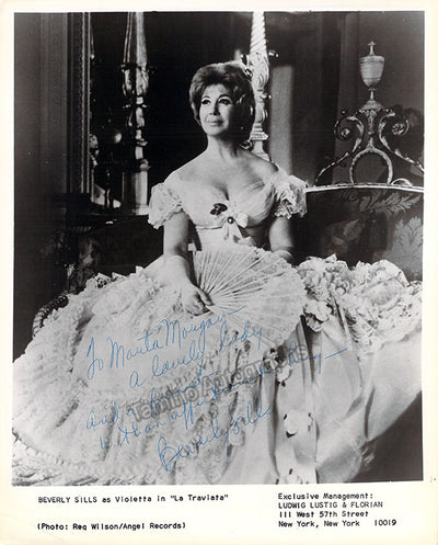 Signed photograph, shown as Violetta in Verdi's La Traviata. Size is 8 x 10 inches, in excellent condition.