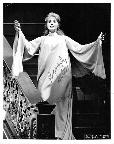 Signed photograph, shown in role. Photo by Beth Bergmann, New York City Opera. Size is 8 x 10 inches, small crease on top left, otherwise in excellent condition.