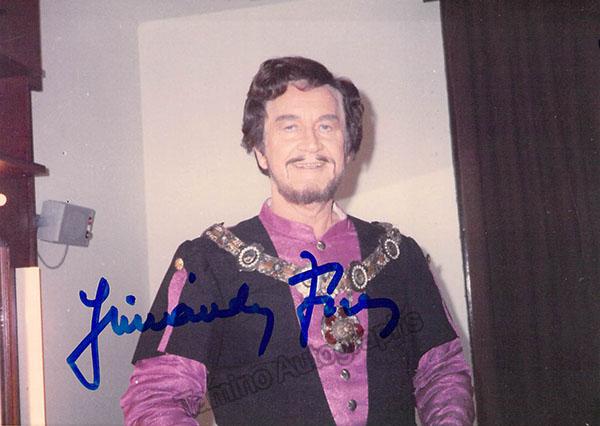 Signed photo, shown in role. Size is 3.5 x 4.75 inches, in excellent condition.