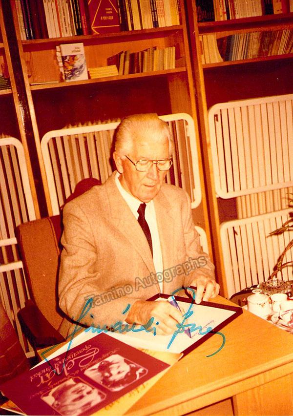 Signed photo, shown as himself with the longtime music editor and programmer for the Hungarian Radio, Mihaly Meixner, perhaps at a public signing. Photo by E. Weiszenberger. Size is 3.5 x 4.75 inches, in excellent condition.