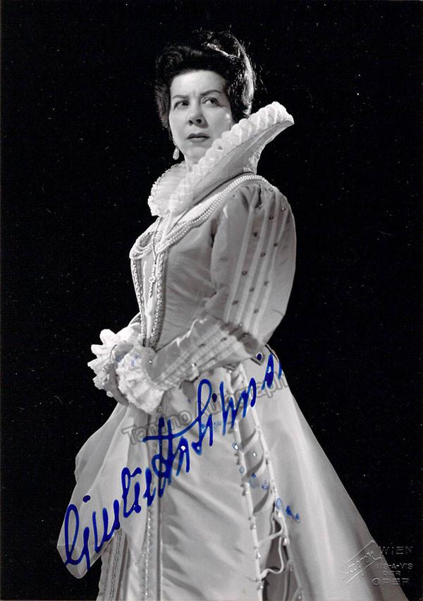 Italian mezzo-soprano (1910-2010), signed photo, shown in role. Size is 4 x 6 inches. Blind stamp by photographer Fayer, Vienna.