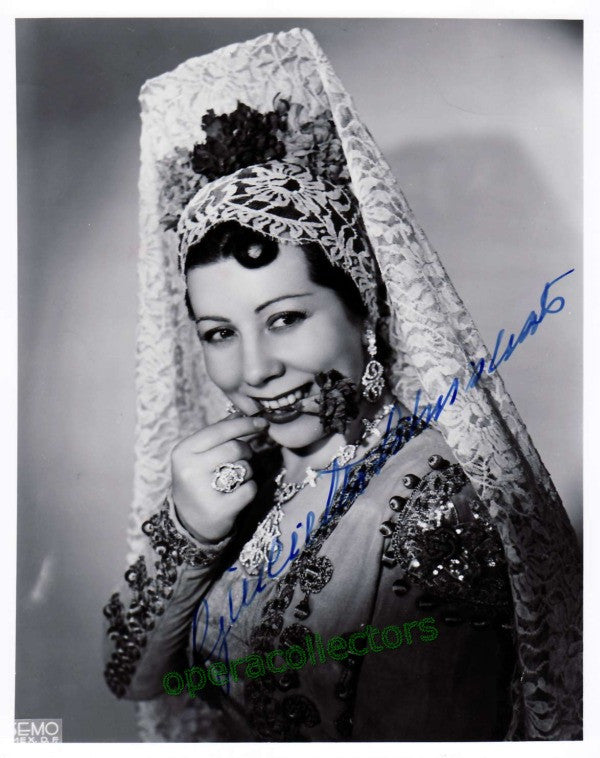 Italian mezzo-soprano (1910-2010), one of the greatest signers of the post-war operatic stage. Signed photo, shown in the title role in "Carmen" by Bizet, size is 8 x 10 inches.