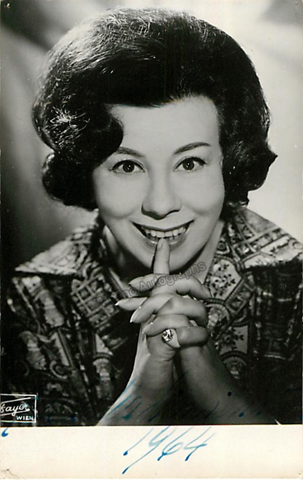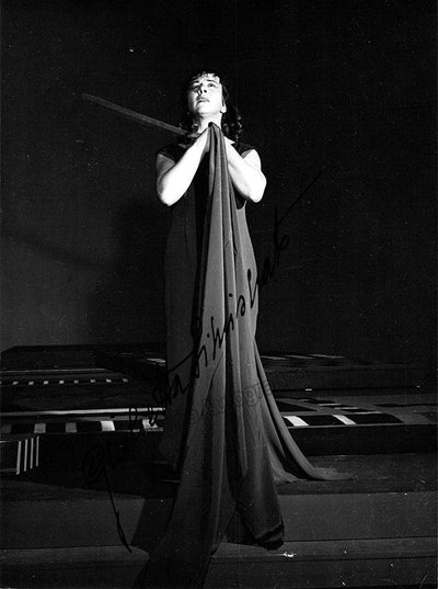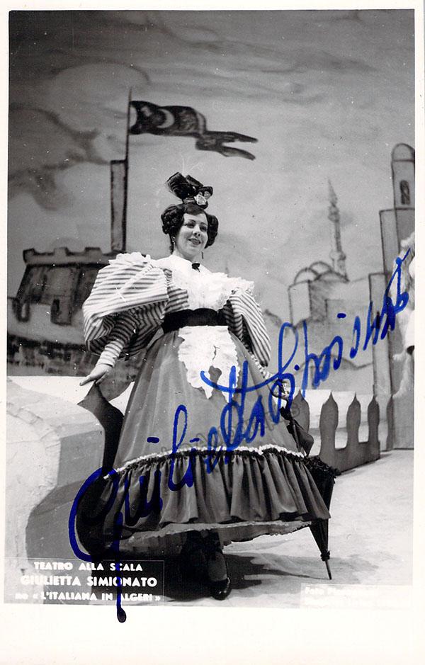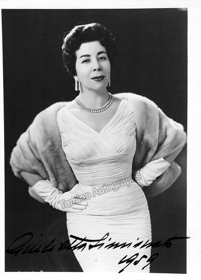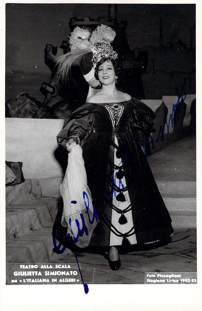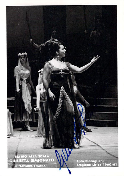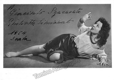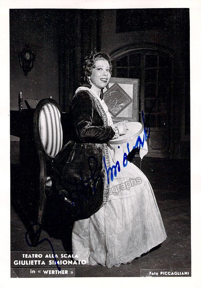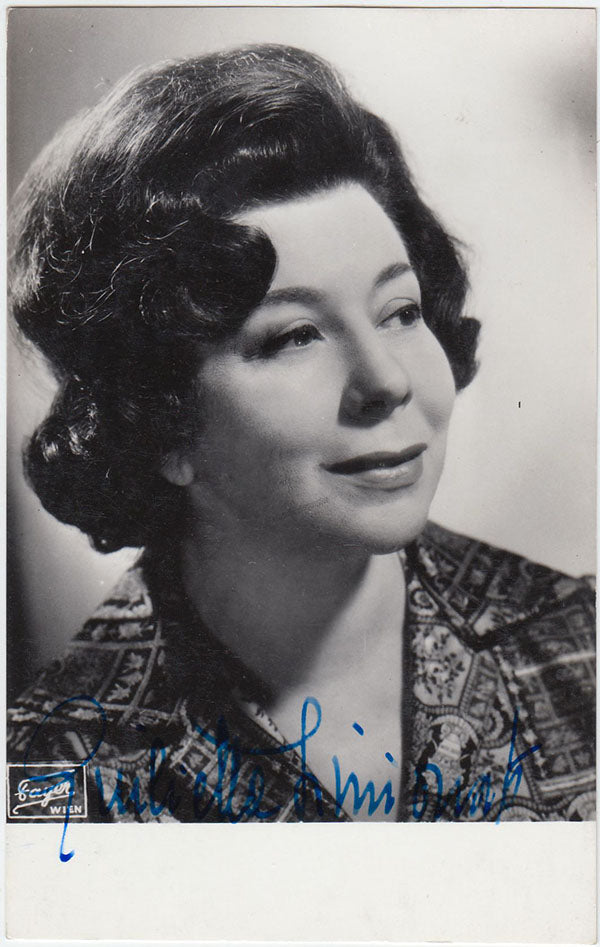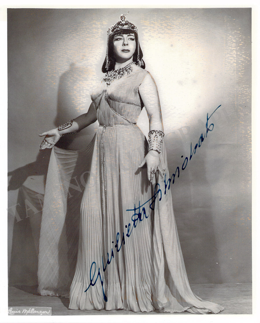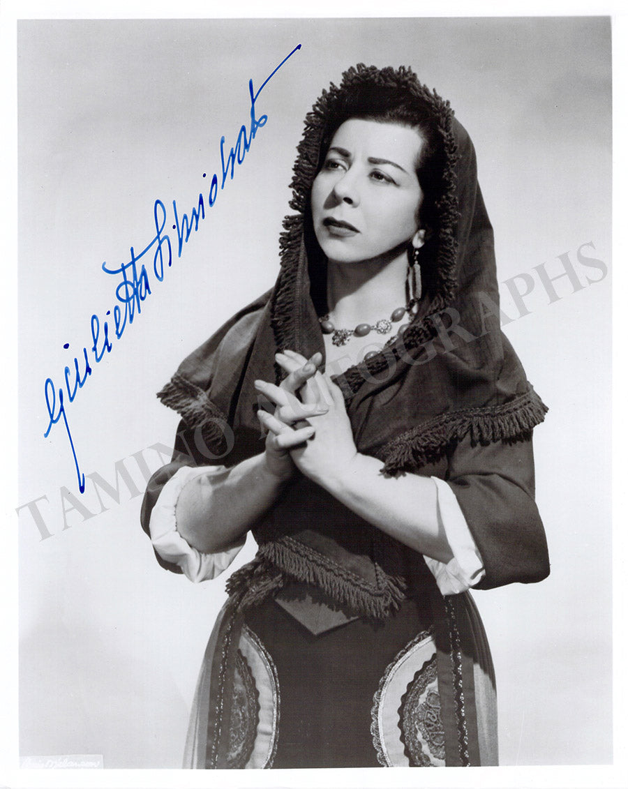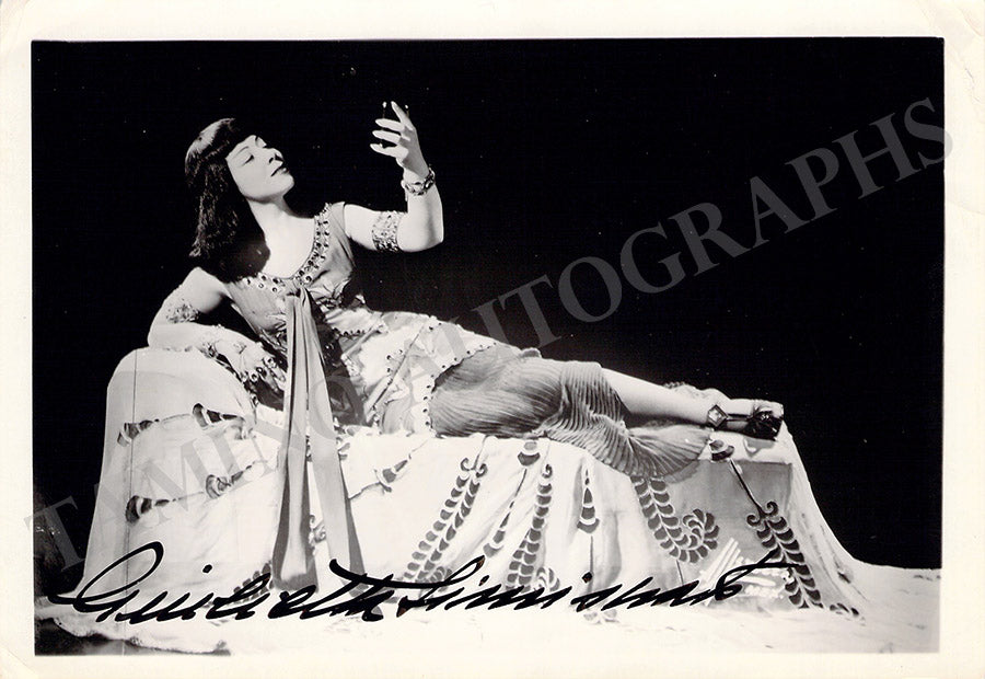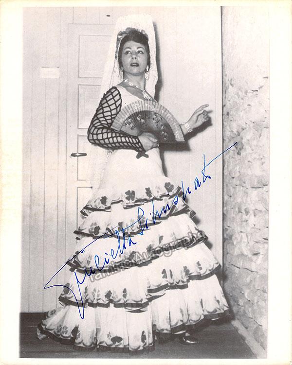 Signed postcard photograph, shown in role (likely Bizet's Carmen), inscribed and dated in 1954. Size is 4 x 5.75 inches, mounting traces on verso, otherwise in excellent condition.