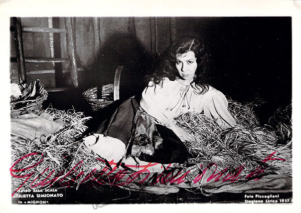 Signed photograph, shown in the title role of Ambroise Thomas's Mignon, photo by Piccagliani, La Scala, Milan. Size is 5 x 7 inches, small creases on corners, otherwise in very good condition.