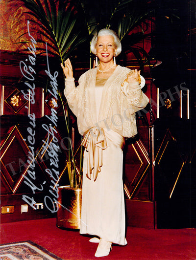 Gorgeous black-and-white photograph signed and inscribed by her in 1988, shown in role. Size is 7.25 x 9.9 inches, in excellent condition.
