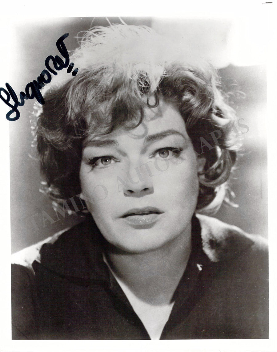Black-and-white movie-still photograph signed by her with a black felt tip pen. Size is 8 x 10 inches, in excellent condition.