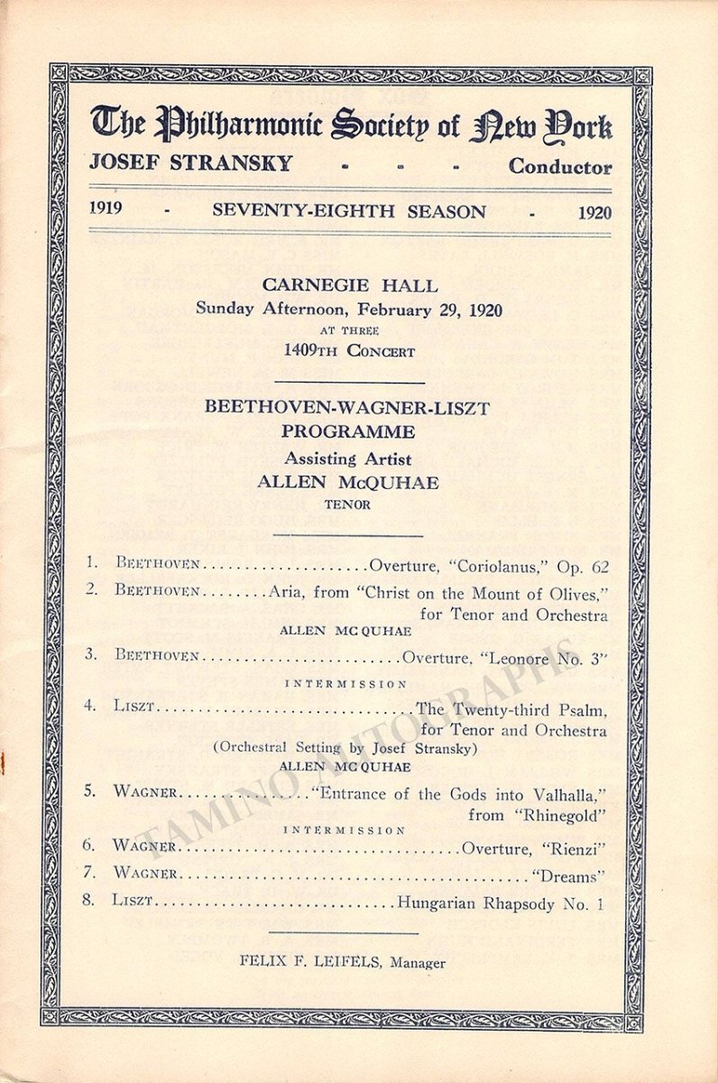 ALSO INCLUDED are playbill announcements for recitals by Fedor Chaliapin and Frida Hempel (2 copies), both from the mid-1920s.