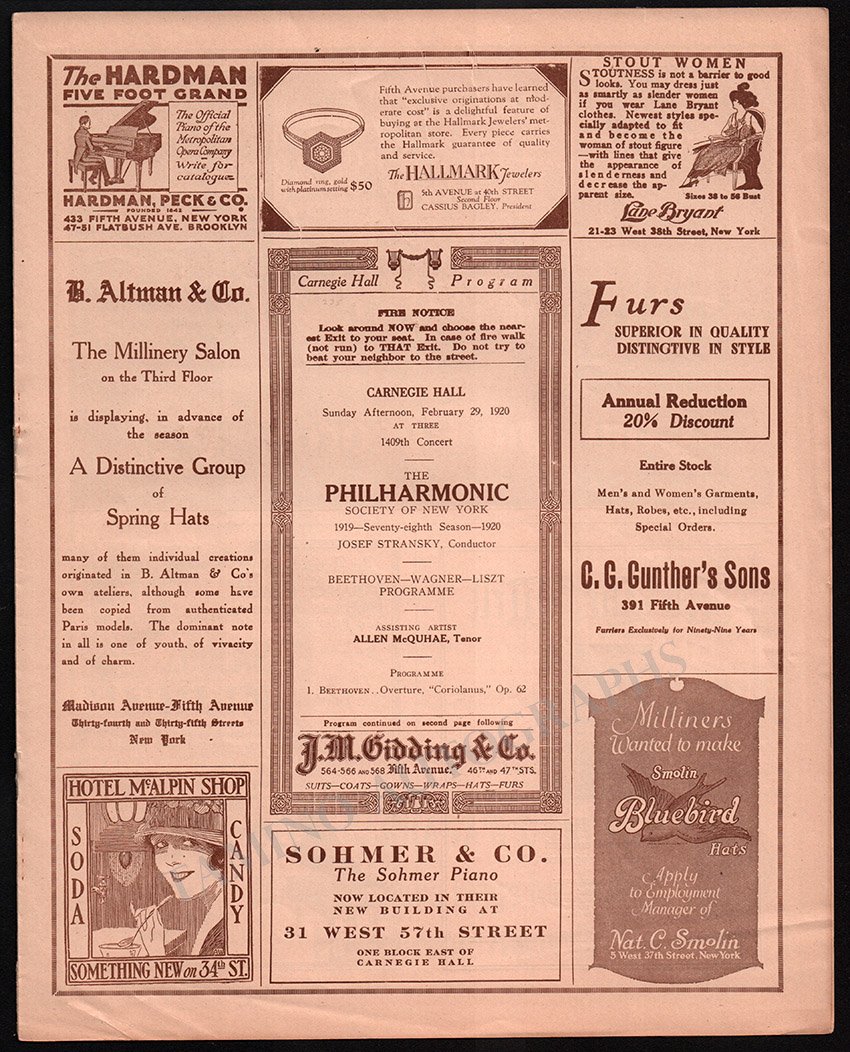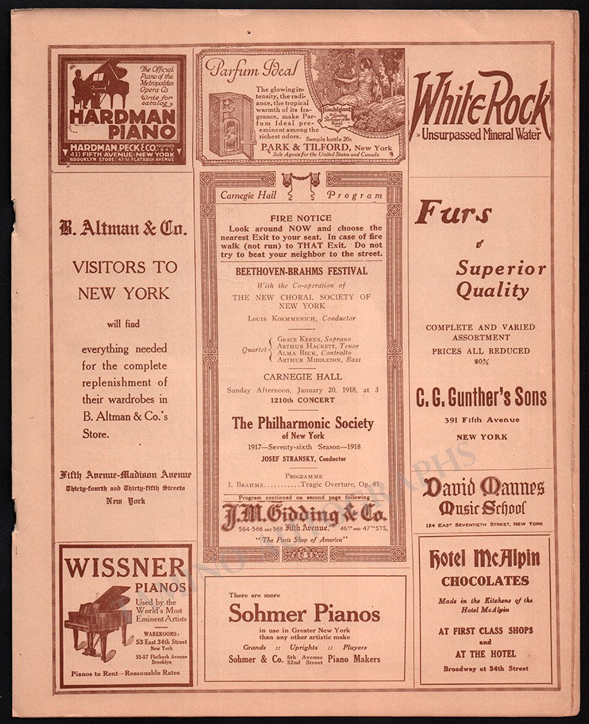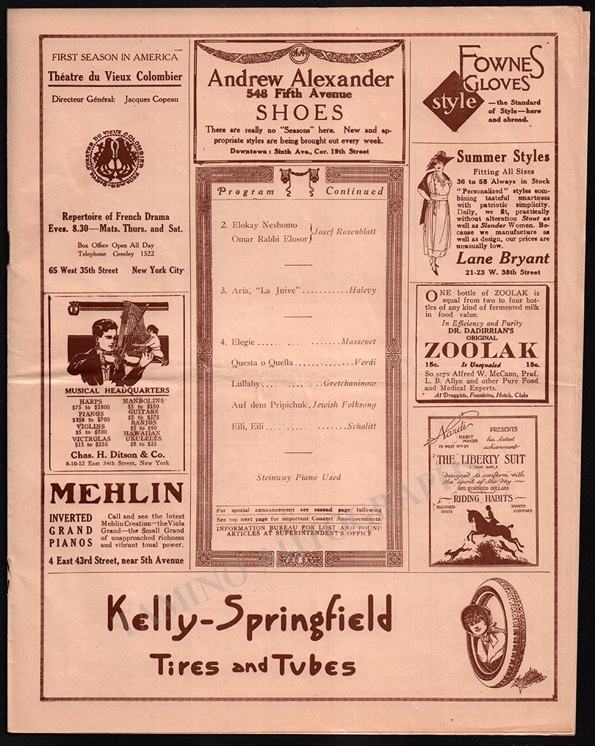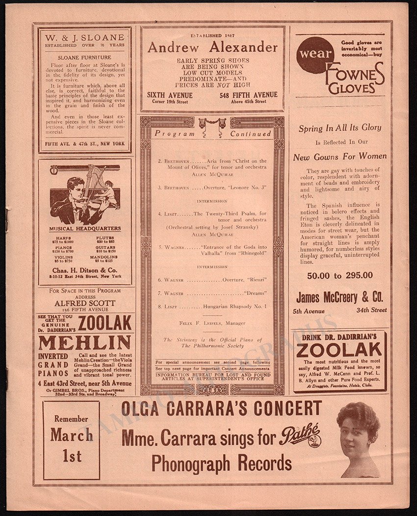 Group of 6 programs for recitals at Carnegie Hall, New York. Artists include Anna Case, Arthur Hackett, Grace Kerns, Josef Ronsenblatt, Beniamino Gigli, Allen McQuhae. Each one is 9.25 x 11.5 inches, in very good condition.