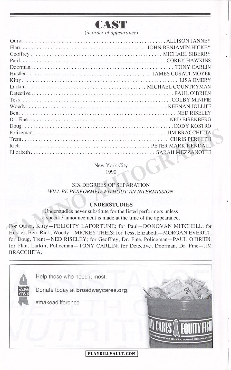 Six Degrees of Separation Autograph Signed Broadway Playbill